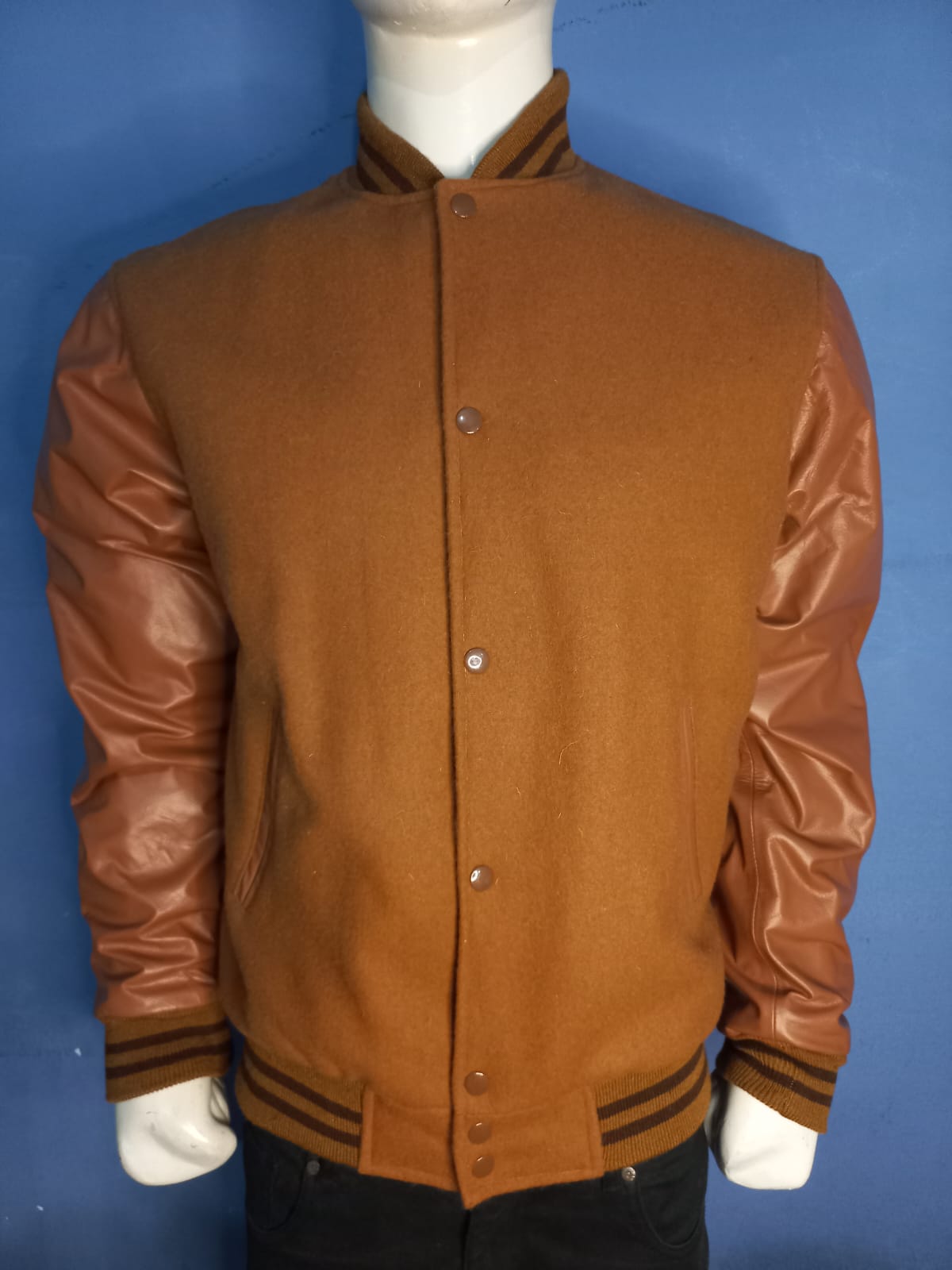 We can make letterman jacket in 24oz high-quality melton wool, Cotton, Fleece, cowhide genuine leather, Polyester fabrics, Shine Satin fabric,